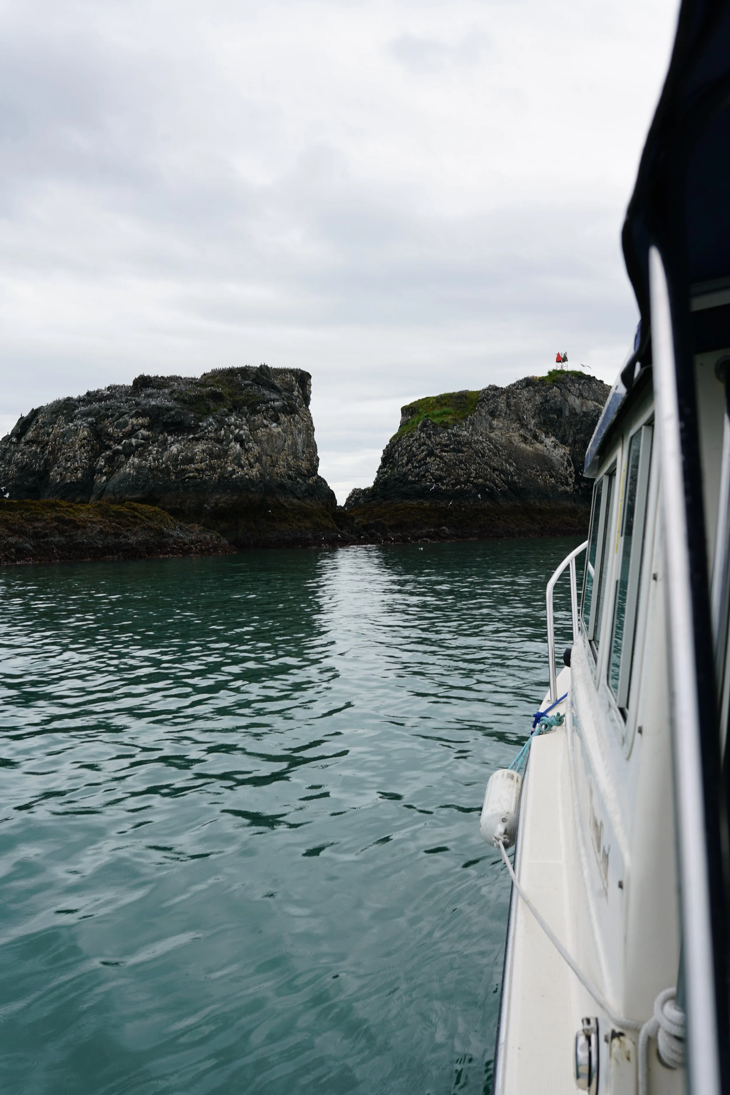 The tour was engaging from start to finish, even with little ones on board. My youngest, Matilda, who was 8 months old at the time, was comfortably onboard and took in all of the smells and sounds of Kachemak Bay. My father-in-law, visiting from Venezeula, loved looking through binoculars at Gull Island, where thousands of nesting seabirds filled the sky. We stopped at Peterson Bay to see an oyster farm, where Scott explained the ins and outs of sustainable aquaculture. And throughout the trip, we spotted sea otters, various gulls, bald eagles, and more.